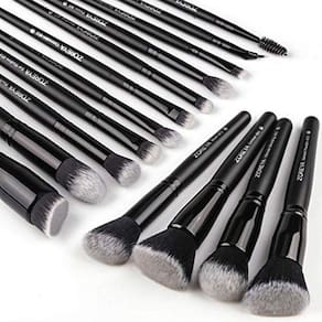 Cor: BlackGood notícias para profissionais de maquiagem e iniciantes! Zoreya 15 peças conjunto de escovas de maquiagem contém 5 escovas básicas, maiores de maquiagem e 10 pincéis relativamente menores. Este conjunto atende quase todas as suas exigências para seus olhares de fantasia. Com alto custo de desempenho e alta qualidade. Este conjunto faz dele um bônus para todos os entusiastas da maquiagem. Cobre todas as áreas do seu Face.It funciona bem para olhos, nariz, lábios, bochechas, testa e até mesmo áreas de difícil acesso em seu rosto. É útil para aplicações versáteis como Ventilador, Pó, Blush, Contorno, Sombra dos Olhos, Ocultação, Mistura, Sombreamento do Nariz, Delineador Labial, Sobrancelha, Delineador, Chicote e muito mais. Possui fibras sintéticas macias e alças duráveis. As fibras sintéticas macias não absorvem líquidos e cremes, mas espalham-na uniformemente no rosto para um visual perfeitamente misturado. A alça de madeira é firme e fácil de segurar. NOTA: O novo produto vai ter algum cheiro, por favor, não se preocupe, não é das cerdas, mas da cola na conexão da haste da escova. Por favor, tire os pincéis e coloque-os no ar, o cheiro desaparecerá em breve. Obrigado pelo apoio.