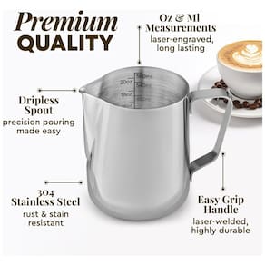 Obtenha leite com espuma cremosa rapidamente você pode usá lo para fazer espuma de leite, medir outros líquidos ou para servir creme ou outras bebidas aos seus convidados. Se você quer aquele café com leite cremoso, coco quente ou cappuccino com a espuma por cima, esta é a jarra de espuma de leite para você. O design ergonômico possibilita o uso de qualquer pessoa. Marcações fáceis de ler dentro do copo As medições dentro da borda facilitam a medição de líquidos. O jarro de café de aço inoxidável de metal de qualidade alimentar também é à prova de ferrugem, para que você possa ler as marcações nos próximos anos, garantido. A alça torna mais fácil manobrar o jarro ao espumar o leite. Melhore suas habilidades de barista torne se uma cafeteira melhor com a ajuda de nosso batedor de leite portátil. Os melhores acessórios para cappuccino. Apresentando um bico estreito que é perfeito para derramar e fazer cappucino art e latte art. Use o como um aquecedor de leite para leite aquecido , cozido no vapor ou como uma panela de servir para leite frio. Uma alternativa perfeita para quem não suporta as variedades de fogão Fácil de limpar e lava louças Limpa em segundos Basta colocá lo em água quente com um pouco de sabão ou colocá lo na máquina de lavar louça. Você verá que está 100 limpo. Considere comprar vários conjuntos para amigos, para viagens e muito mais Quer se escreva capachino, capucinno ou de qualquer outra forma, sabemos que o nosso copo de espuma tornará mais fácil para você criar esse delicioso elixir Marca: Não Informado
